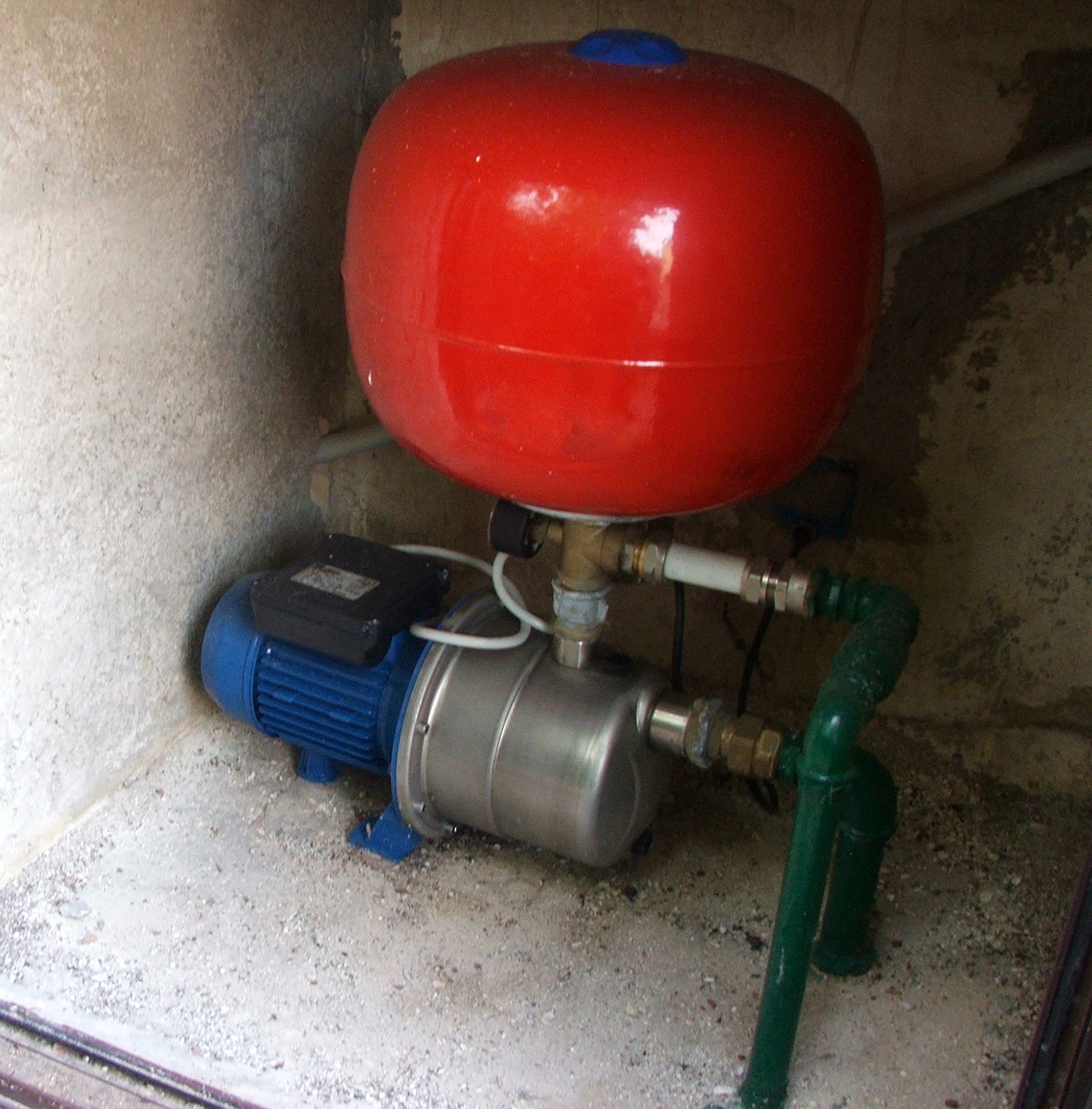 Hệ thống này đã được thay thế bởi 1 chiếc máy bơm EBARA JEX 150 cùng bình tích áp 8L và relay áp lực. Hệ thống này không chỉ tăng áp lực đáng kể tại các đầu ra sử dụng nước mà còn cho phép loại bỏ bể chứa nước trên mái nhà, hơn nữa cải thiện đáng kể độ ồn khi vận hành máy bơm.