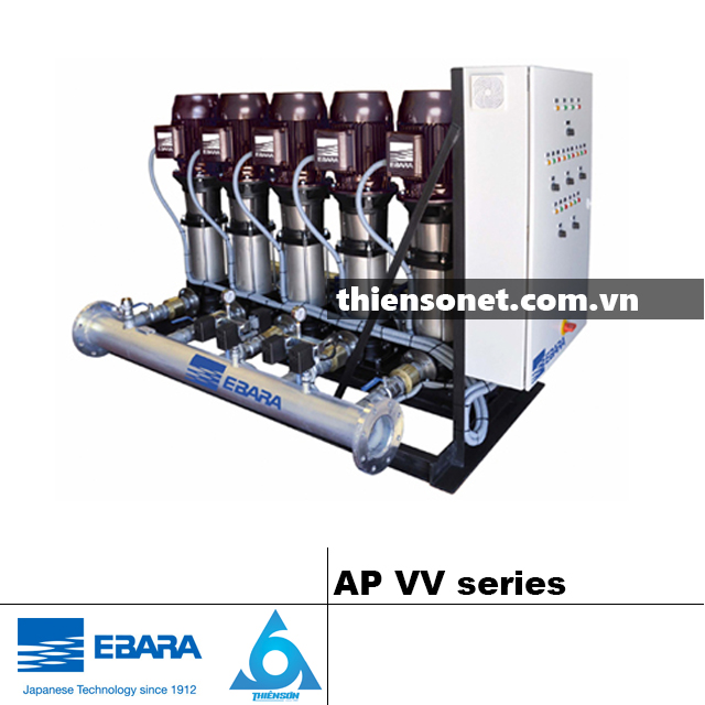 • 2 máy bơm nước Ebara - CVM với 2 cực động cơ tự thông gió không đồng bộ, lớp học hiệu quả IE2 cho động cơ ba pha từ 0.75 kW với bộ biến tần điện tử