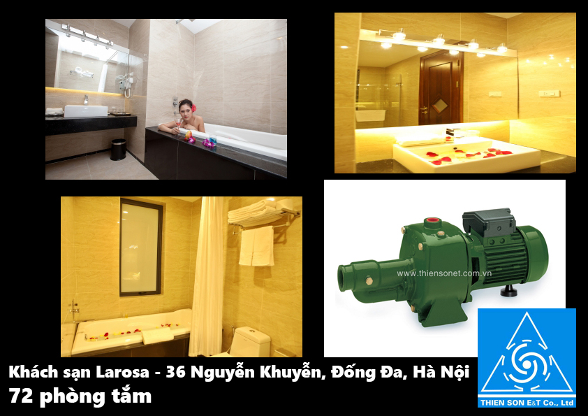 Tư vấn, lắp đặt hoàn thiện hệ thống máy bơm nước Khách sạn Larosa gồm 72 phòng nghỉ tương ứng 72 phòng tắm cùng nhiều công trình vệ sinh khác trong khách sạn bao gồm: