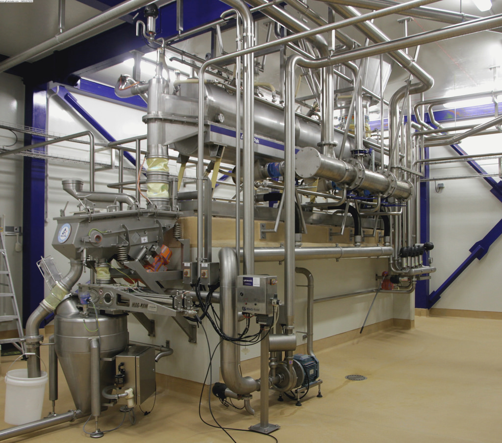 Tiếp nhận sữa: Ở phần lớn các nhà máy chế biến sữa, sữa được bơm từ xe bồn vào bể chứa bằng bơm ly tâm cánh đơn. Nếu cần áp suất cao, chúng tôi cung cấp bơm đa tầng cánh. Để bơm hết sữa ra khỏi xe bồn, có thể sử dụng một bơm cánh đơn tự mồi, tự tạo ra chân không.